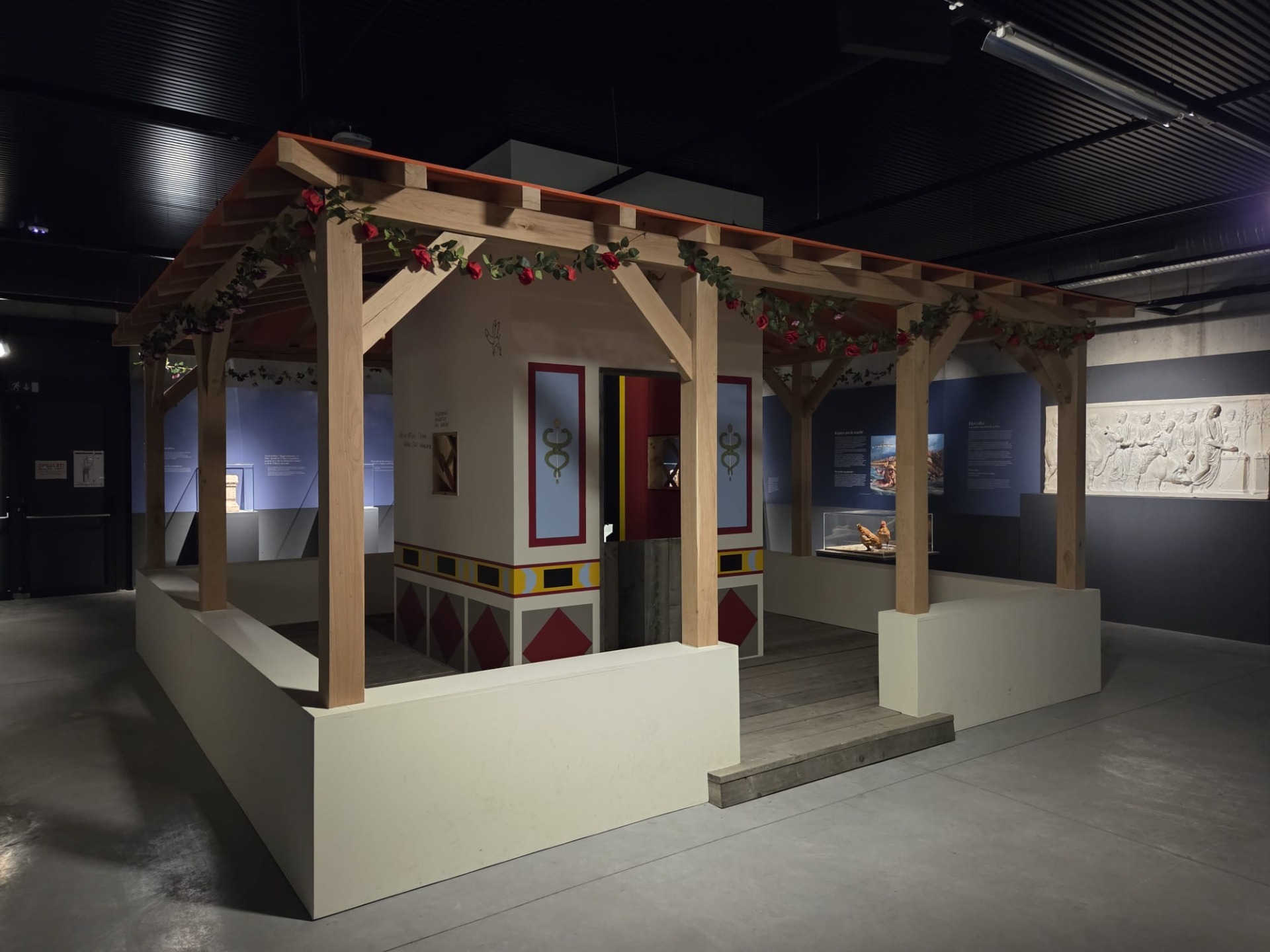 Na onze eerste indrukken van de omgeving, duiken we de diepte in. Letterlijk, want de tijdelijke tentoonstelling OMG! Op stap met Romeinse goden... bevindt zich op de lager gelegen verdieping van de nieuwe vleugel van het Archeocentrum.
