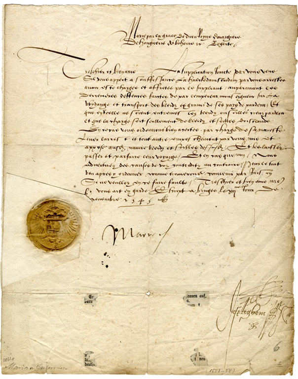 Handgeschreven brief van Maria van Hongarije vanuit Brugge in verband met een scheepsvracht (12 november 1545)