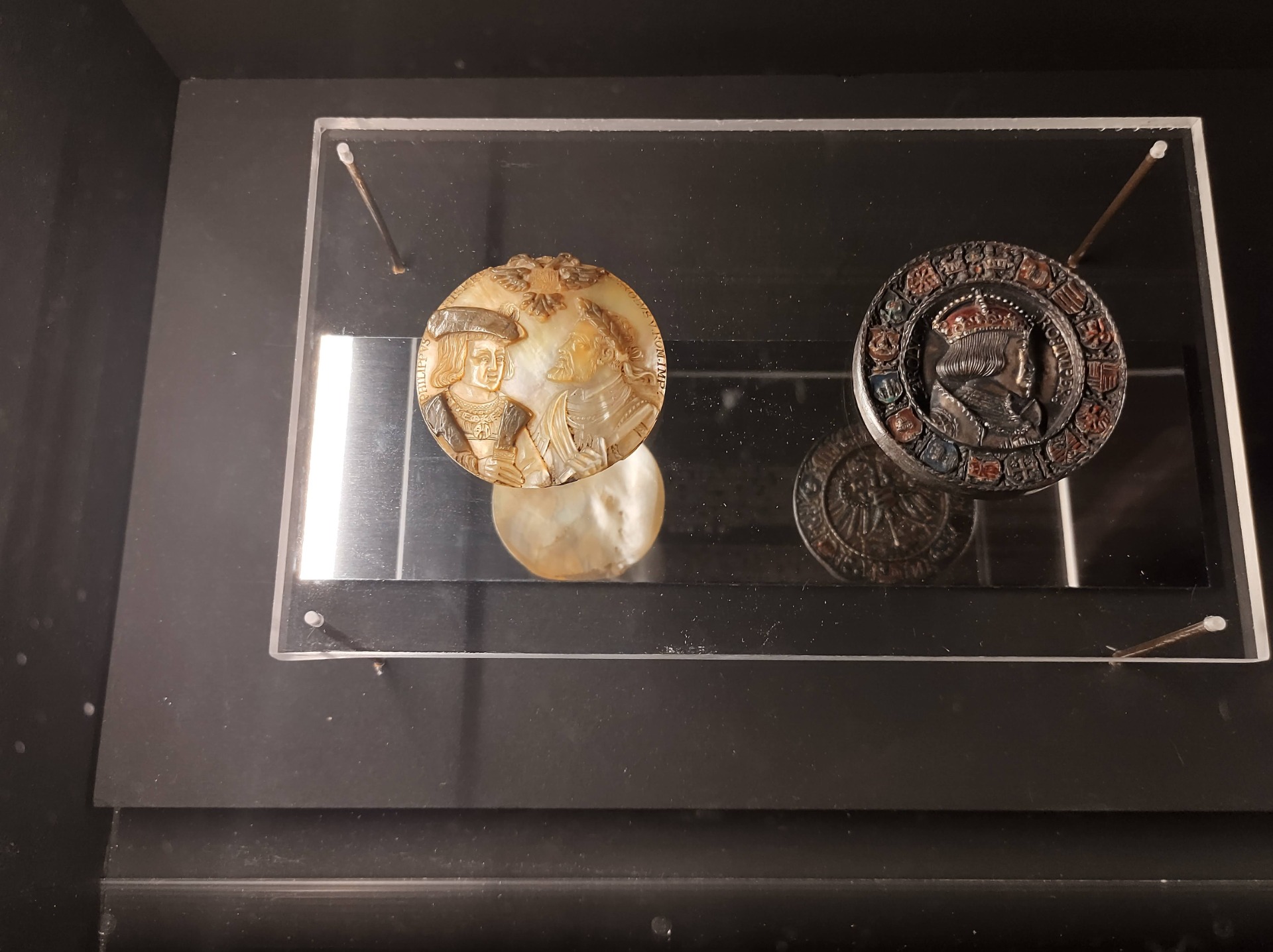 Op dit fragiele kunstwerkje uit de zestiende eeuw staan Filips de Schone en Karel V afgebeeld.